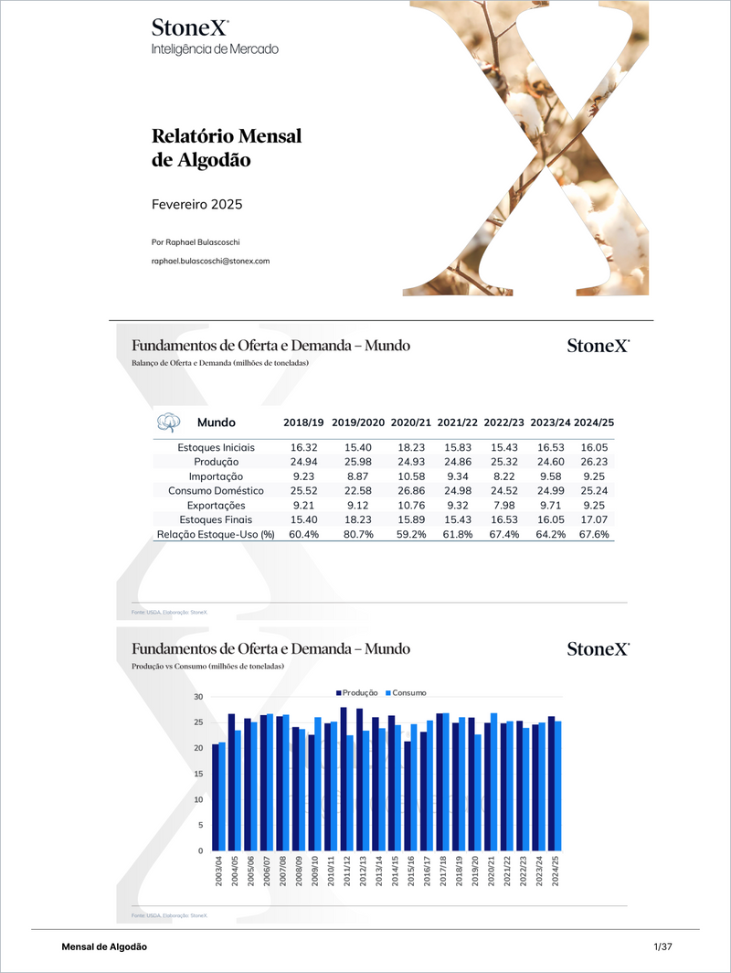 Mucho más que información, nuestro contenido aporta un análisis completo de los movimientos del mercado, sus perspectivas y tendencias. Nuestros informes ayudan a los productores y empresas rurales en la toma de decisiones, a través de análisis, datos e información exclusivos desarrollados por los especialistas de Inteligencia de Mercados StoneX. A partir de nuestros análisis, usted podrá comprender e interpretar los mercados, anticipar las tendencias del sector y planificar posibles riesgos y oportunidades del mercado.