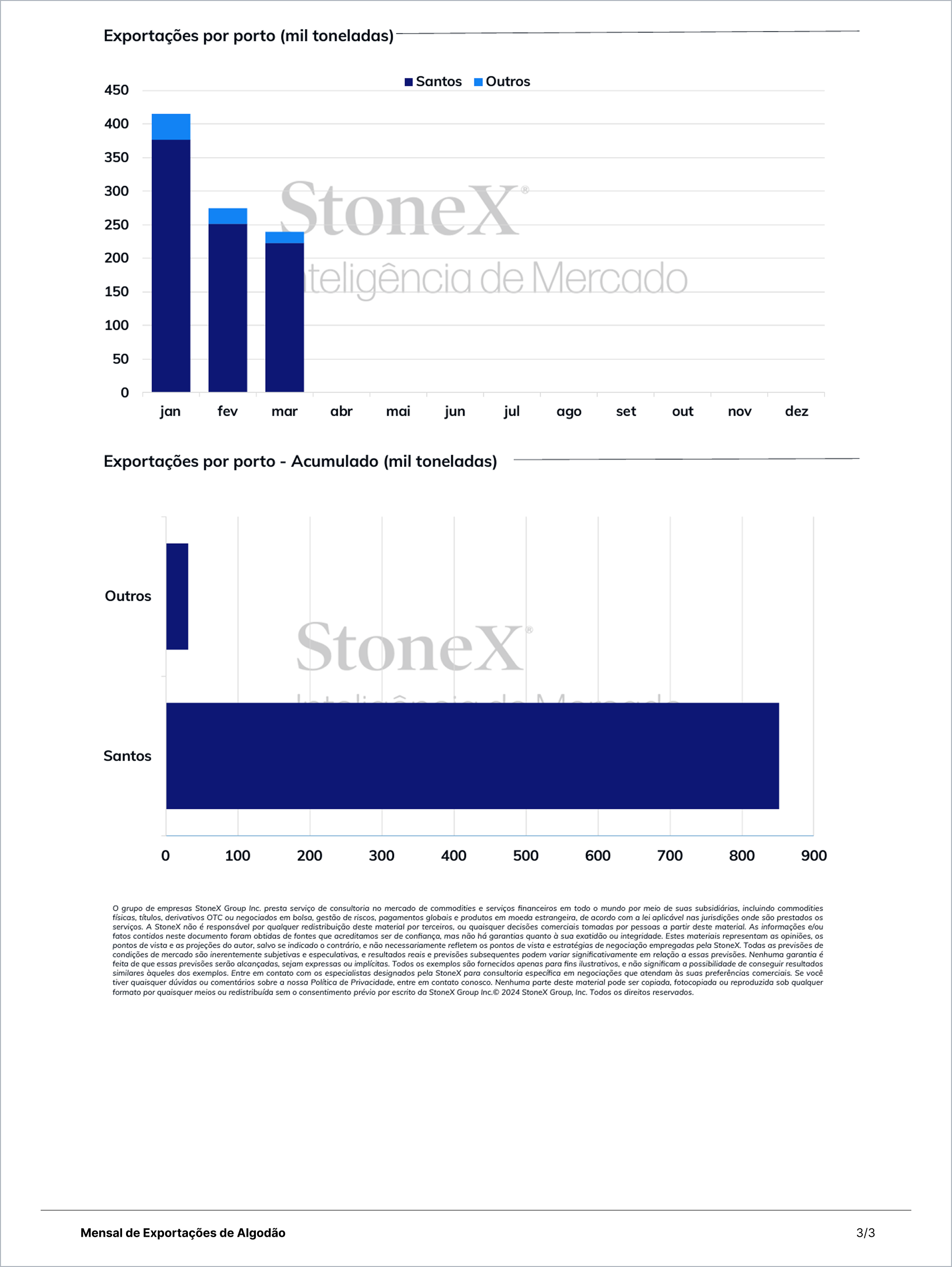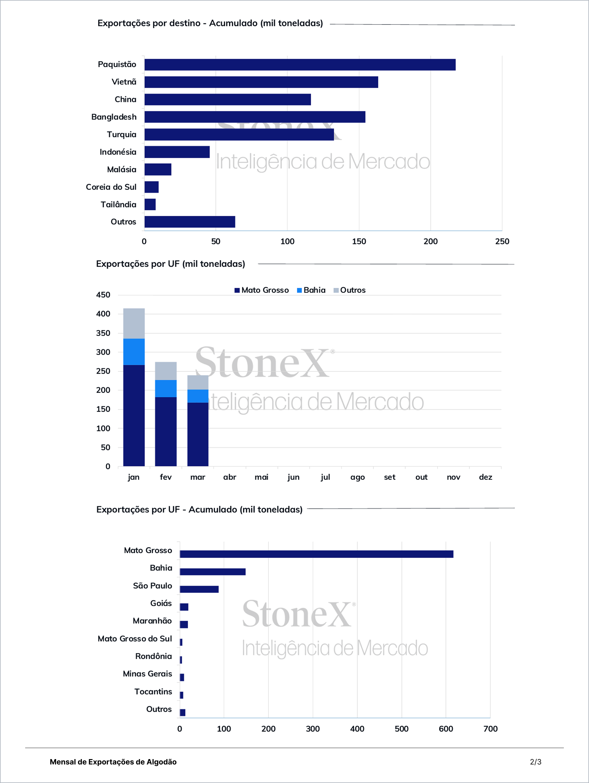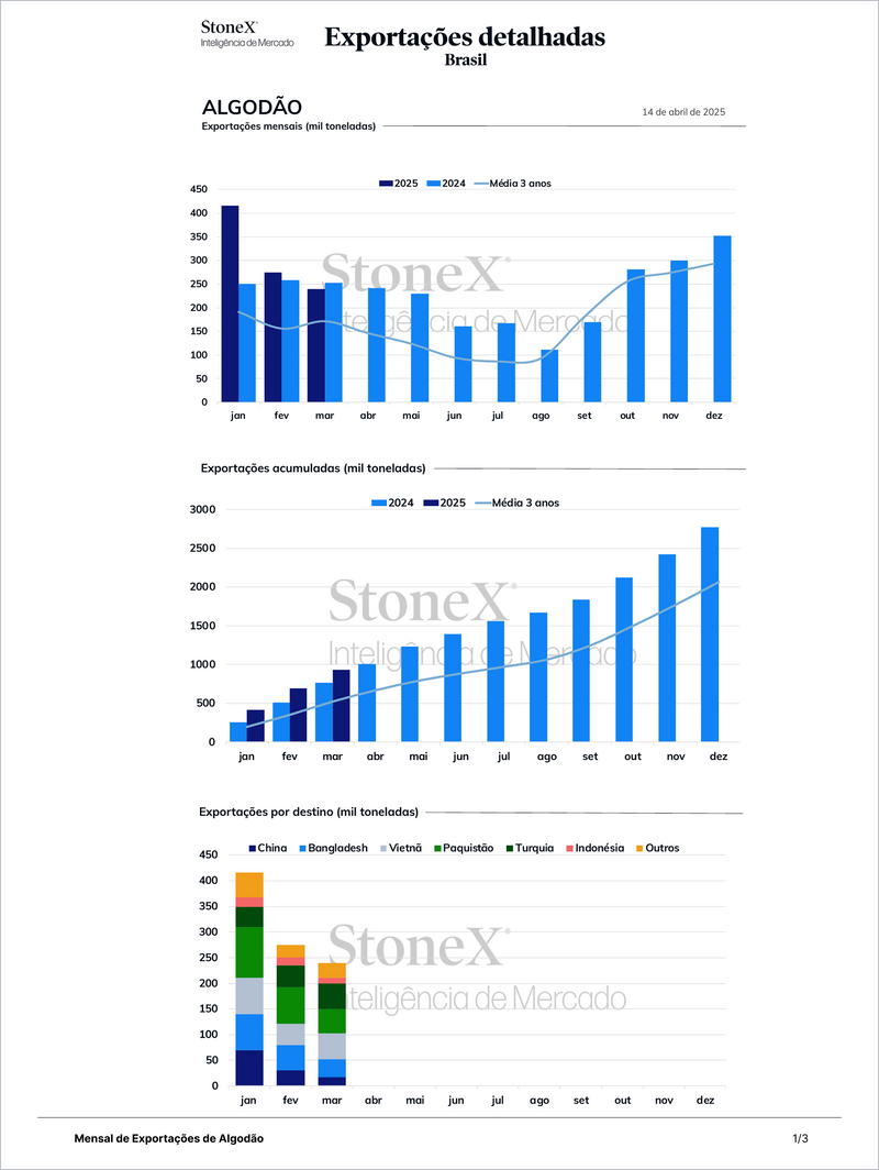 Mensual de Exportaciones de Algodón - Brasil