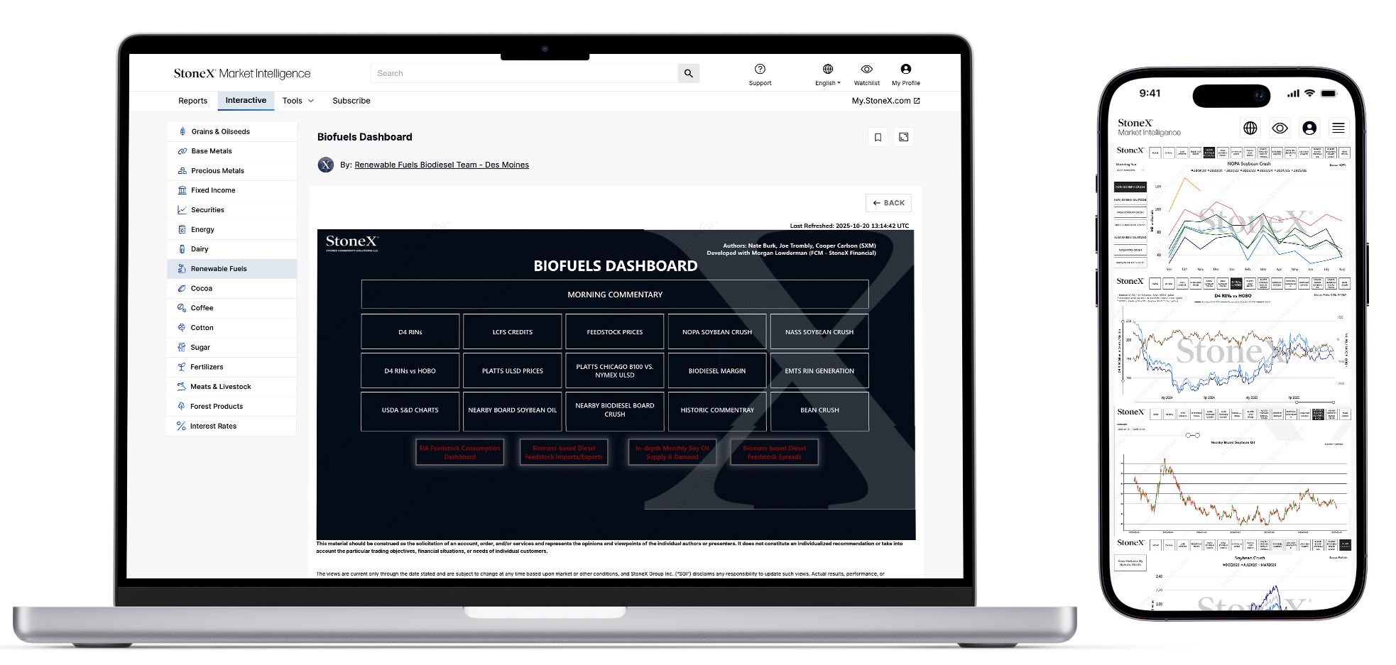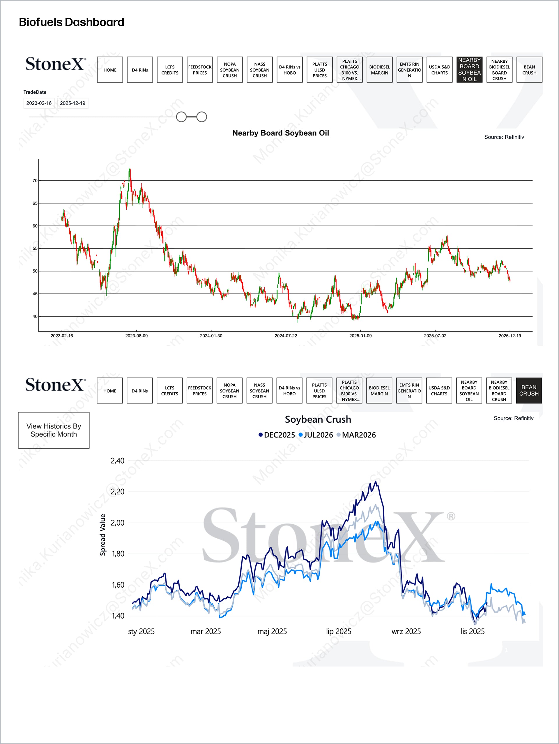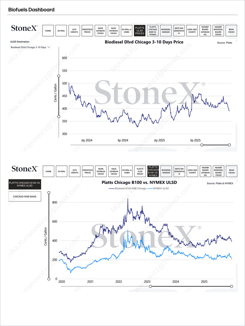 What data and market insights does the StoneX Biofuels Dashboard provide?