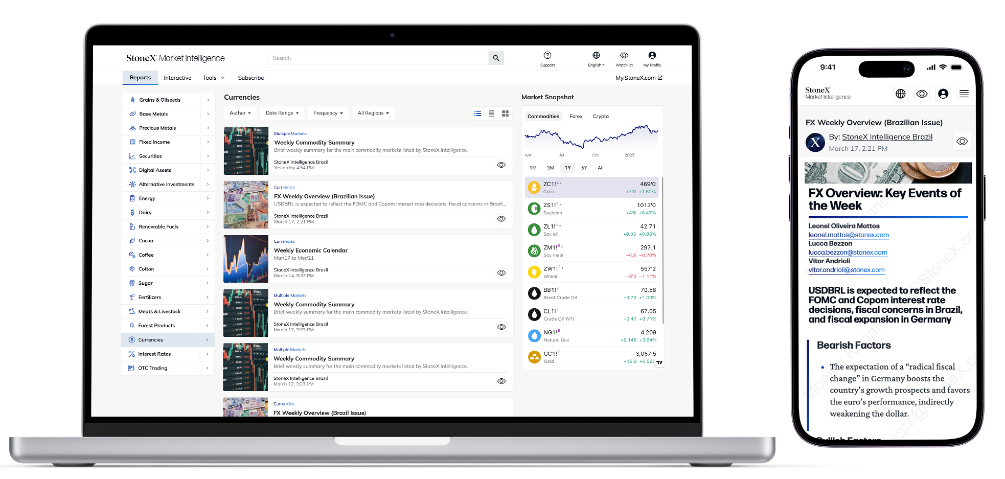 Much more than information, our content brings complete analysis of market movements, their perspectives, and trends. Our reports help rural producers and companies in decision-making, through exclusive analyses, data, and information developed by StoneX Market Intelligence specialists.