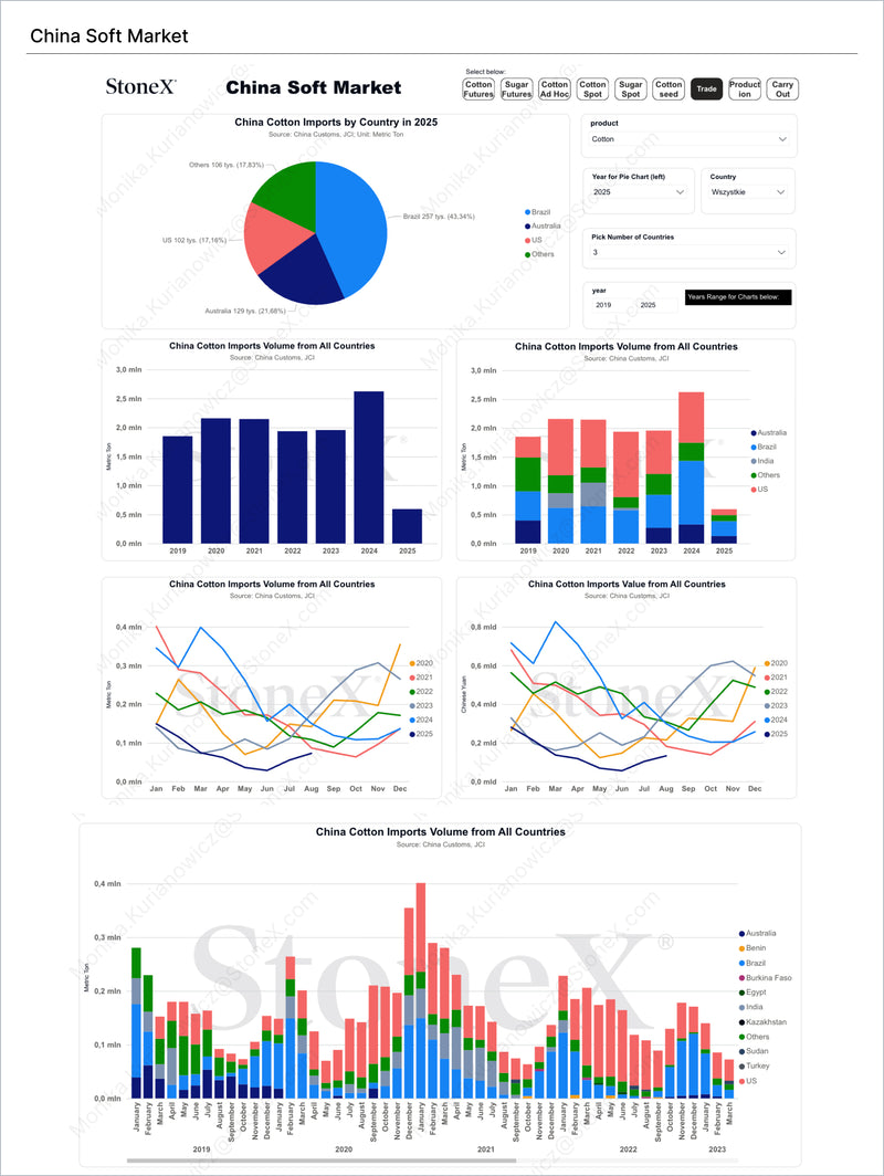 StoneX Market Intelligence is aimed at all decision-makers exposed to the commodity market who seek high-quality information and rapid availability to support their analyses and manage their risks. We offer packages designed for rural producers, investment funds, cooperatives, industries, banks, trading companies, brokers, resellers, and associations.