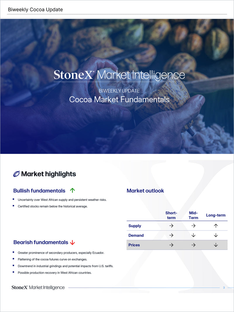 StoneX Cocoa subscriptions comes with a free trial period, giving you the chance to explore the included reports and decide if the content is right for you. You can also view preview images in the gallery of the plan, available for select reports, to get a better sense of the content included.