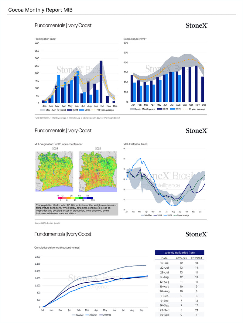 Yes, it offers advanced weather dashboards and ENSO forecasts for major cocoa-producing regions.