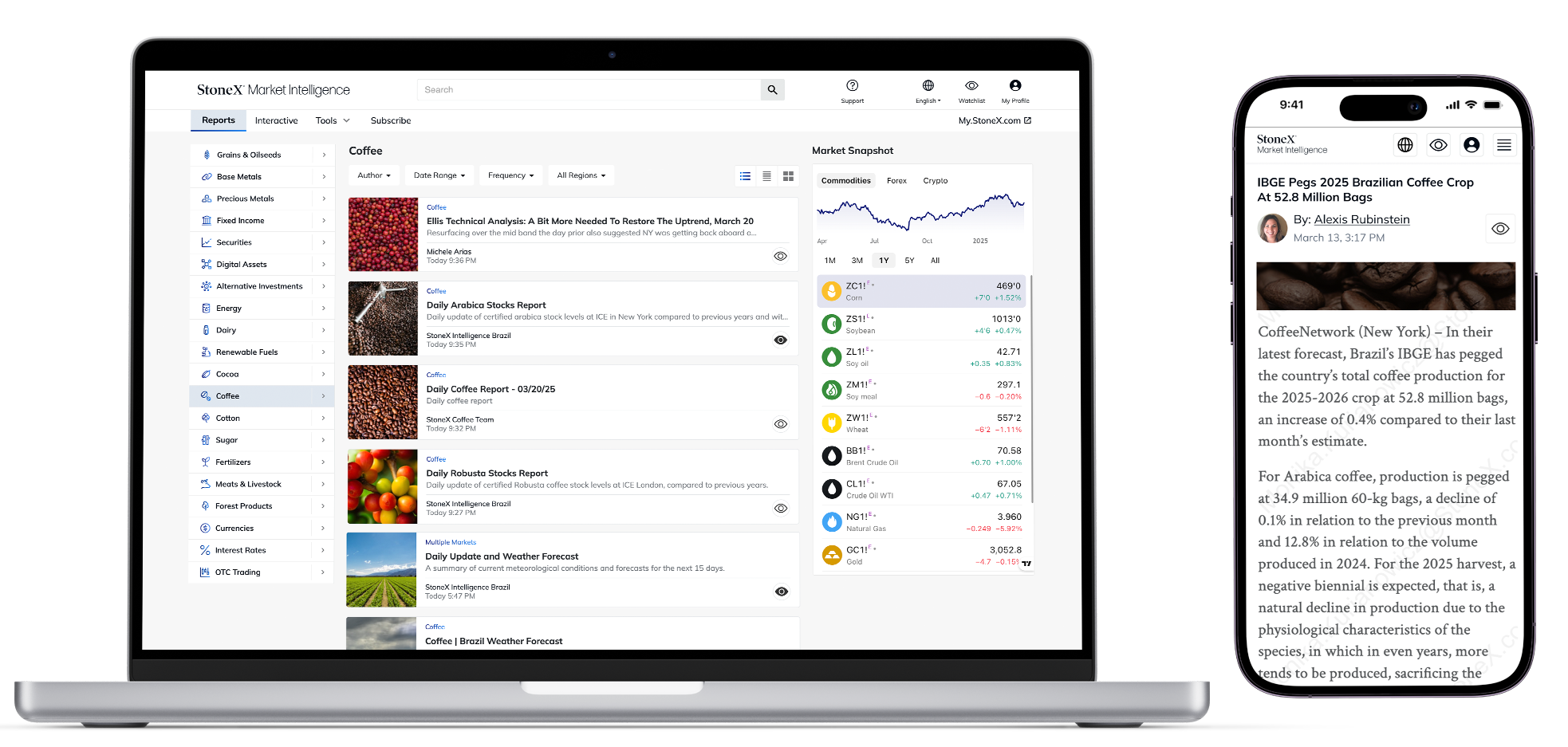 Much more than information, our content brings complete analysis of market movements, their perspectives, and trends. Our reports help rural producers and companies in decision-making, through exclusive analyses, data, and information developed by StoneX Market Intelligence specialists.