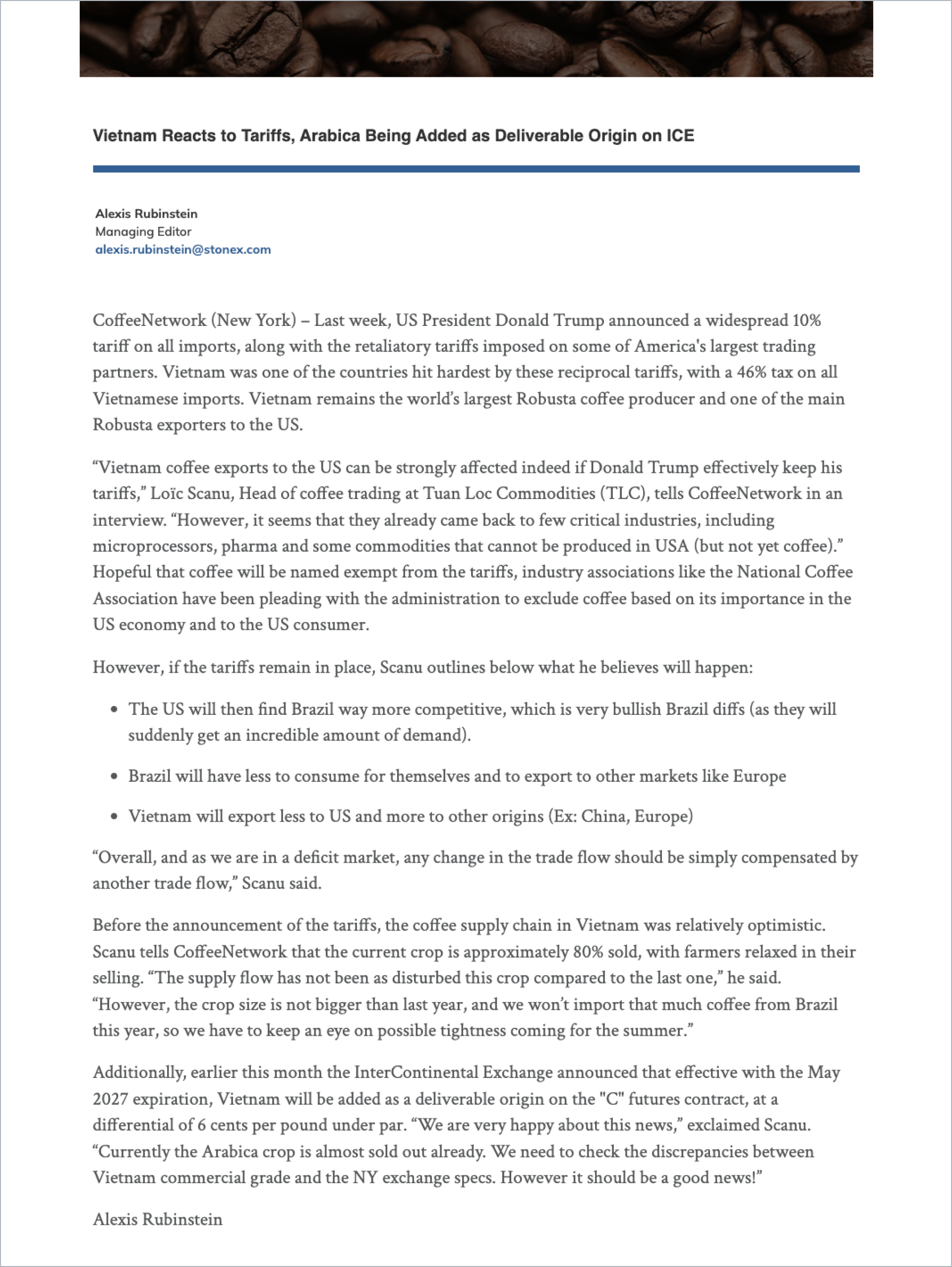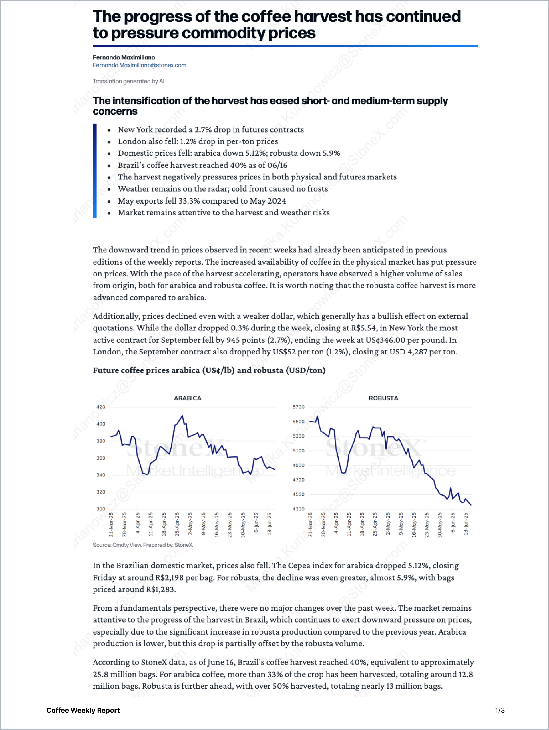Coffee Weekly Report