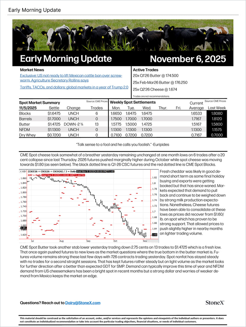It consolidates daily market commentary, weekly recaps, and monthly production insights into one resource, so producers can quickly access the information that matters most for pricing and margin management.
