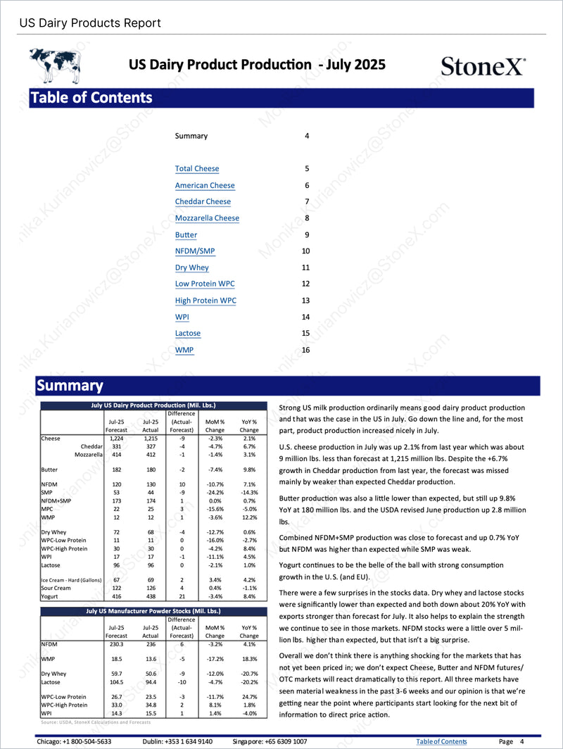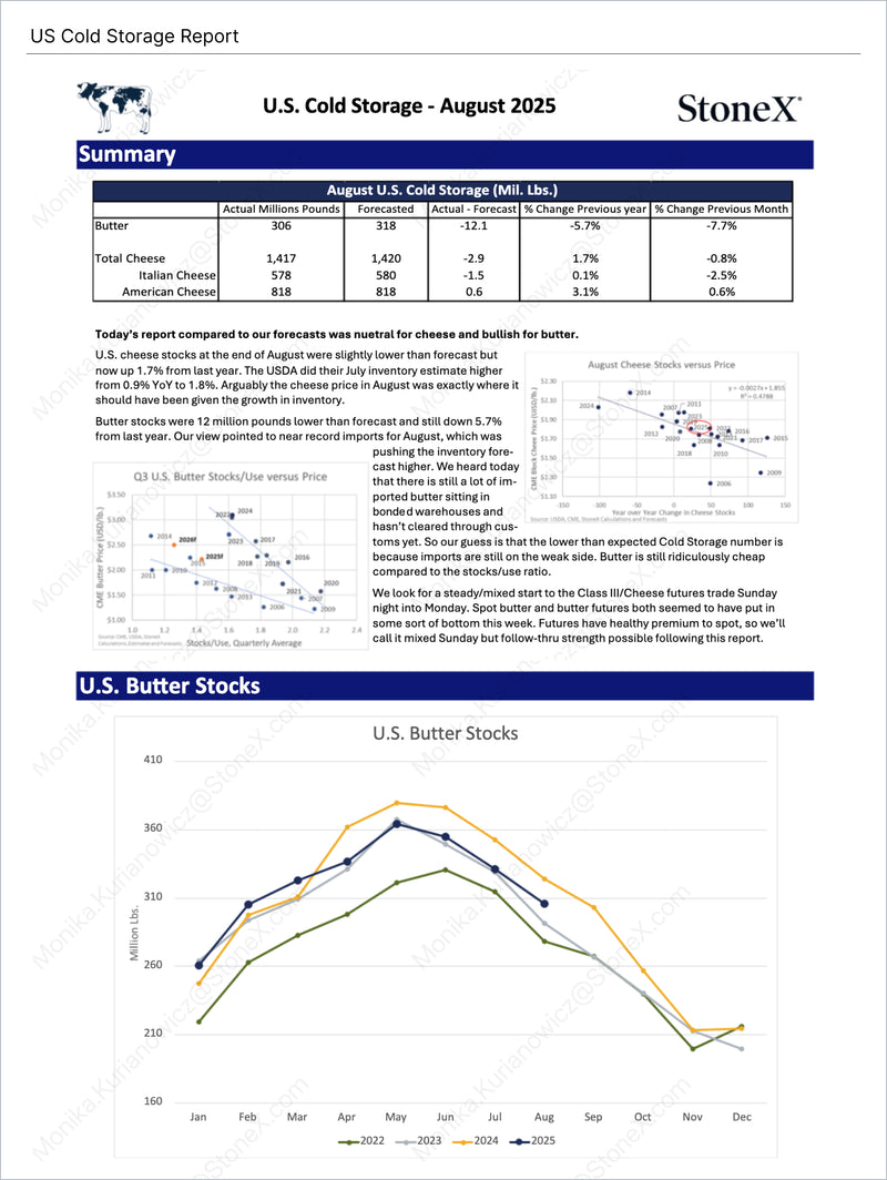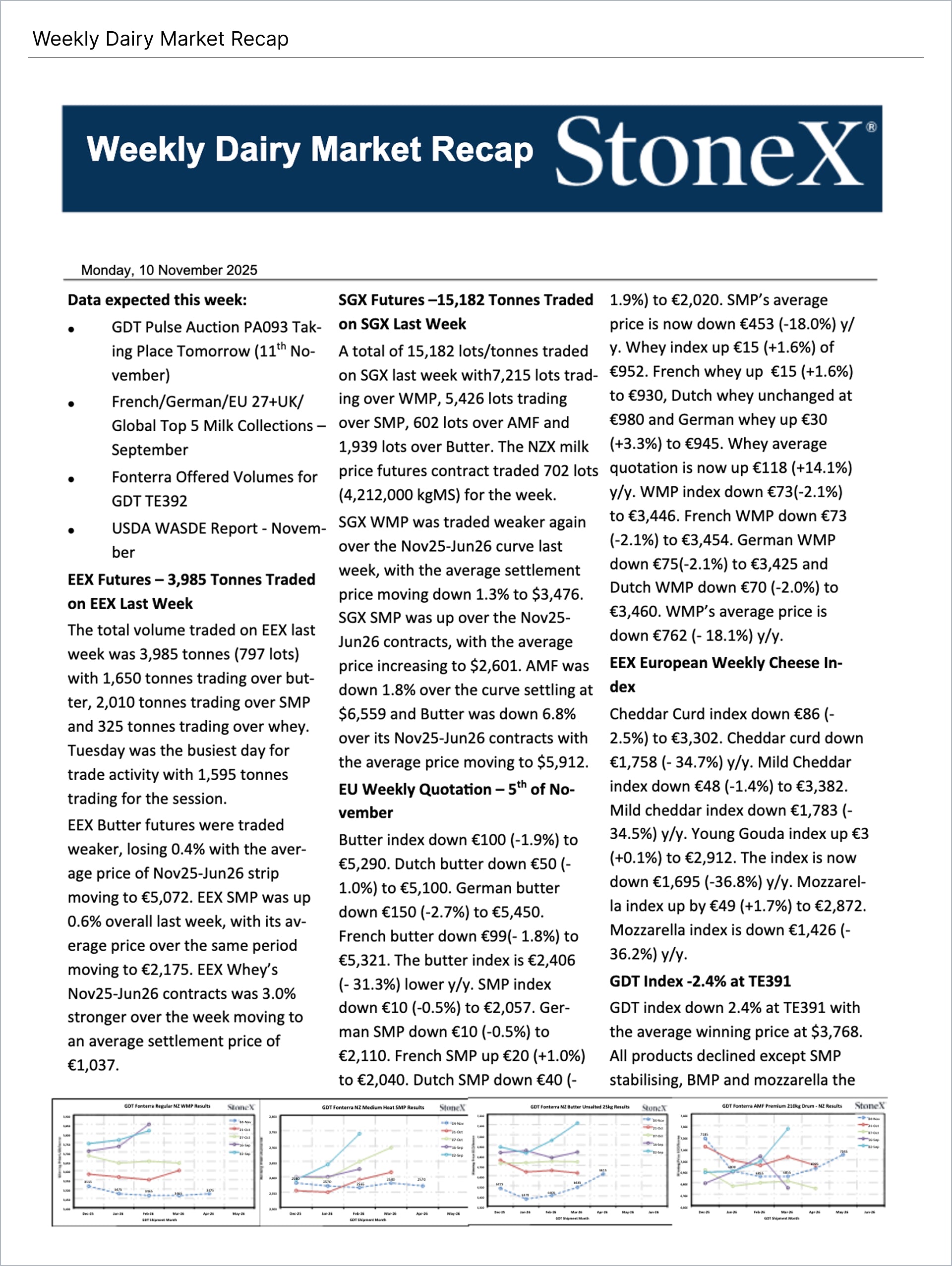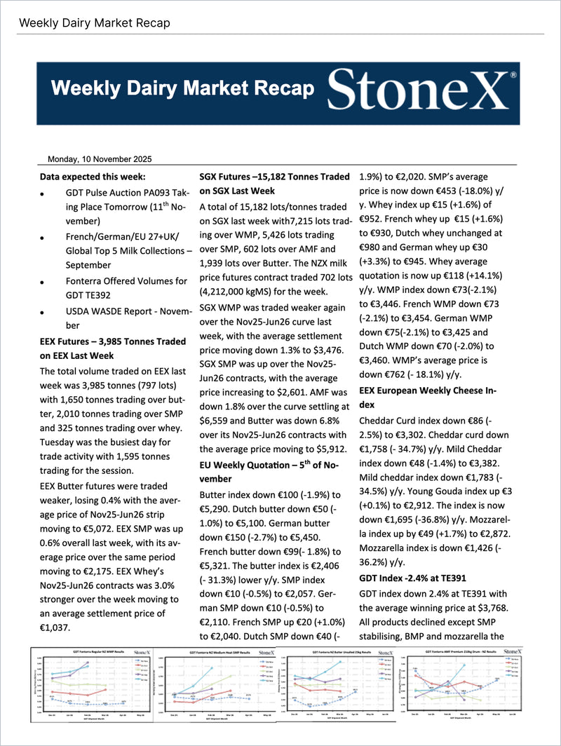 StoneX Dairy US Farmer subscriptions comes with a free trial period, giving you the chance to explore the included reports and decide if the content is right for you. You can also view preview images in the gallery of the plan, available for select reports, to get a better sense of the content included.
