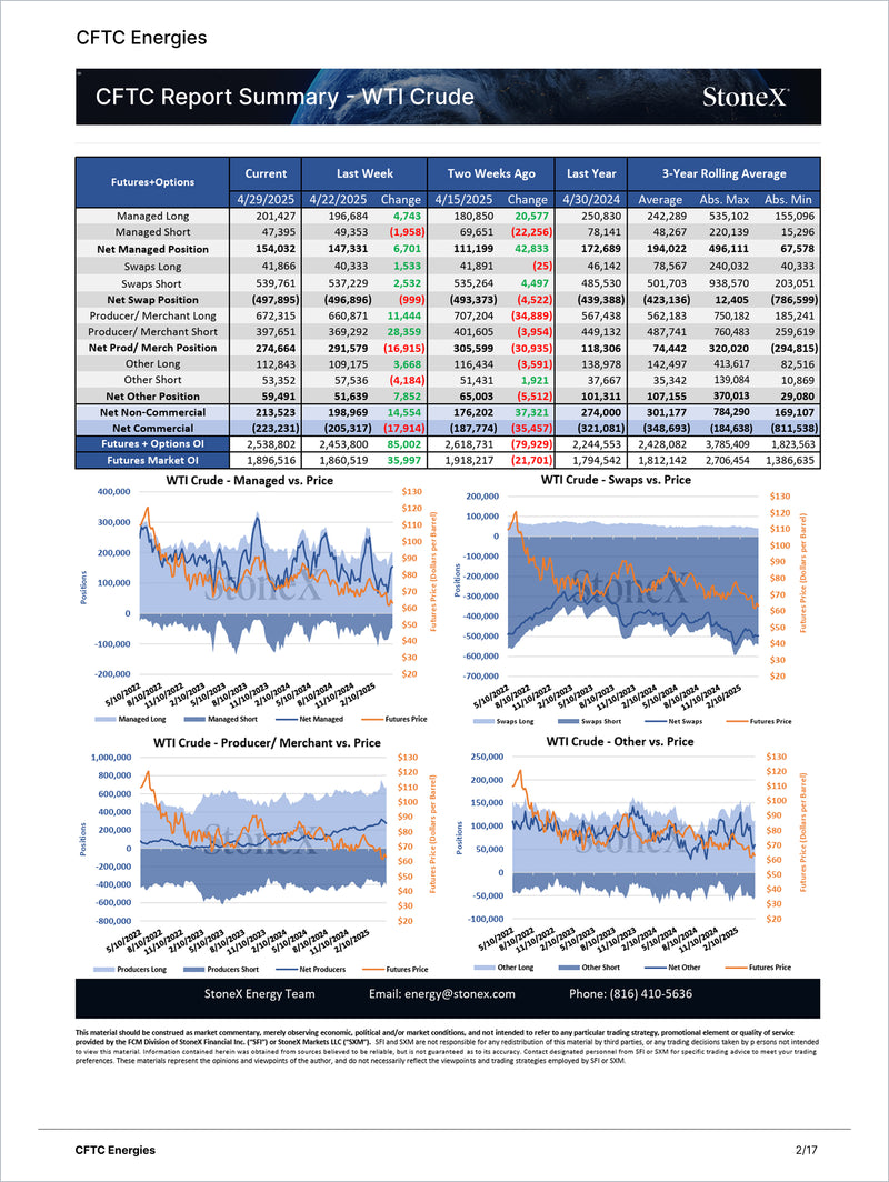 • DOE reports, rig counts, and CFTC positioning