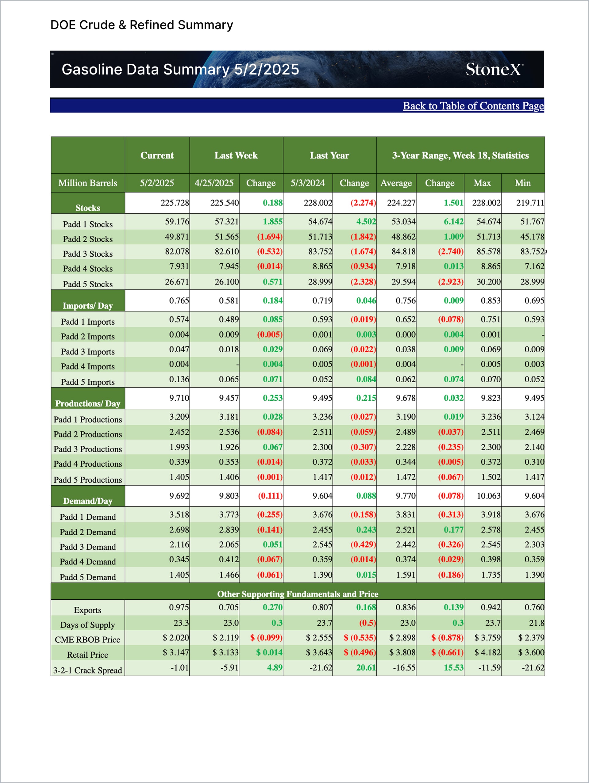 • Key indicators like refinery runs, imports/exports, and inventory level