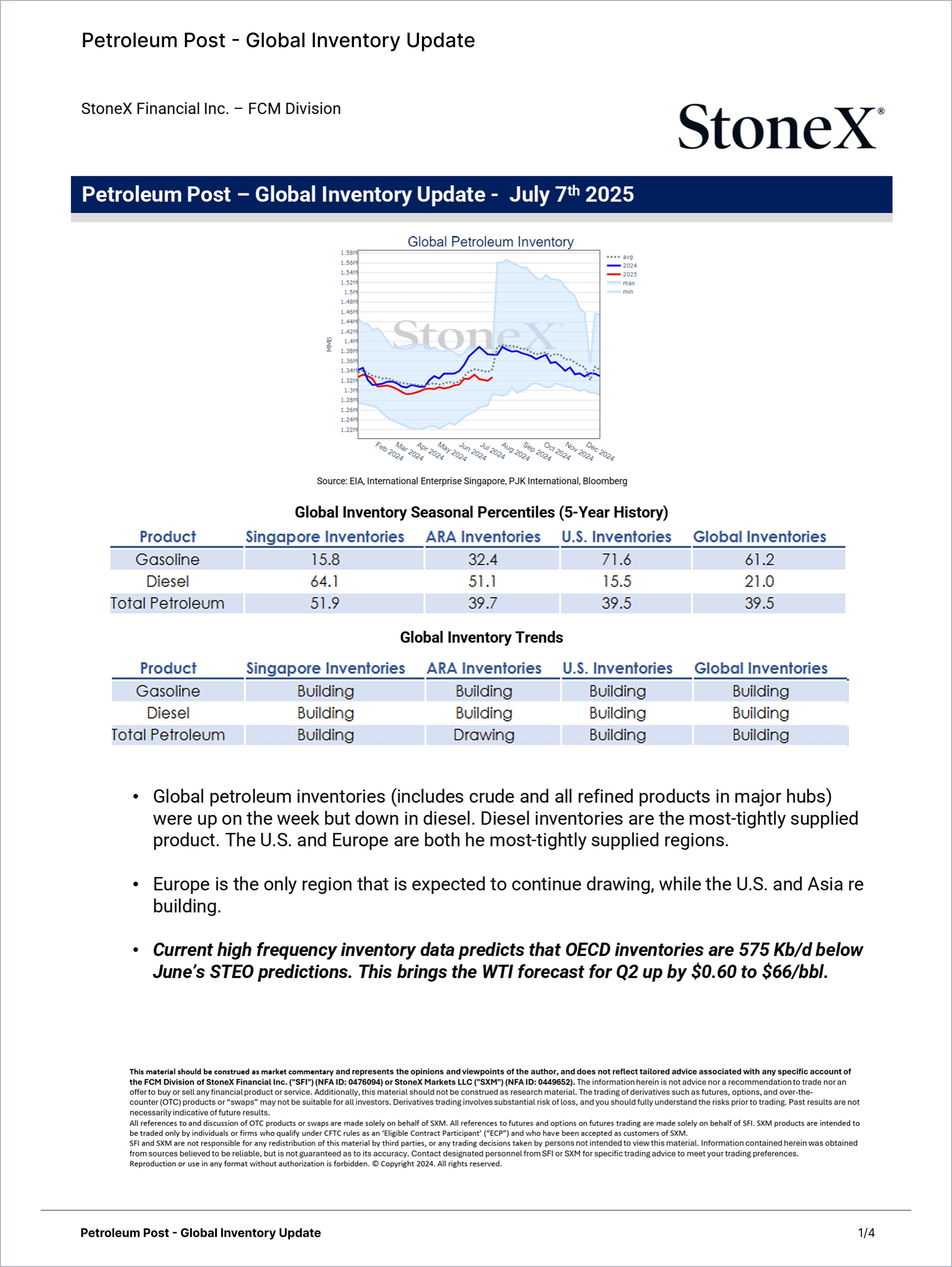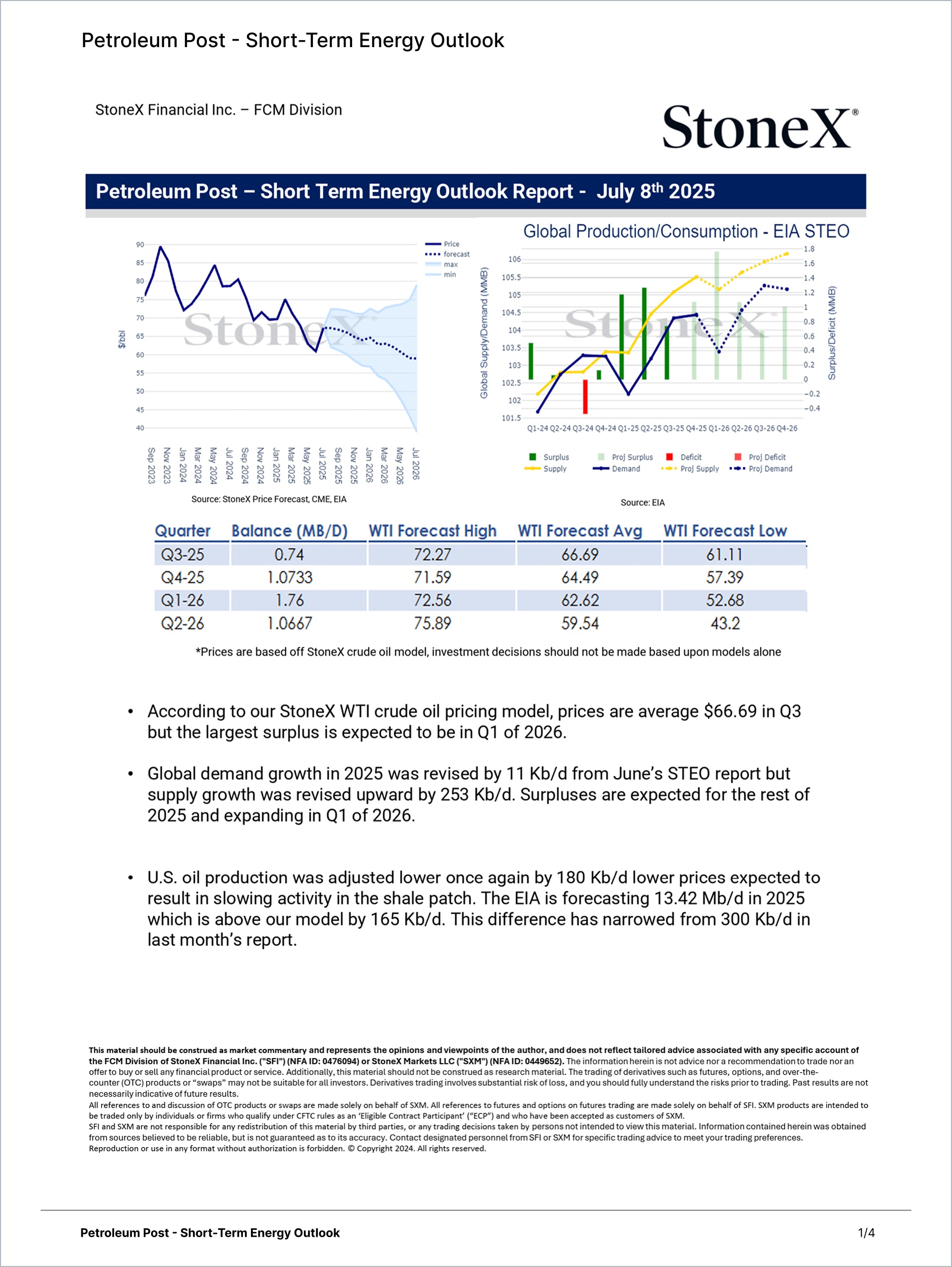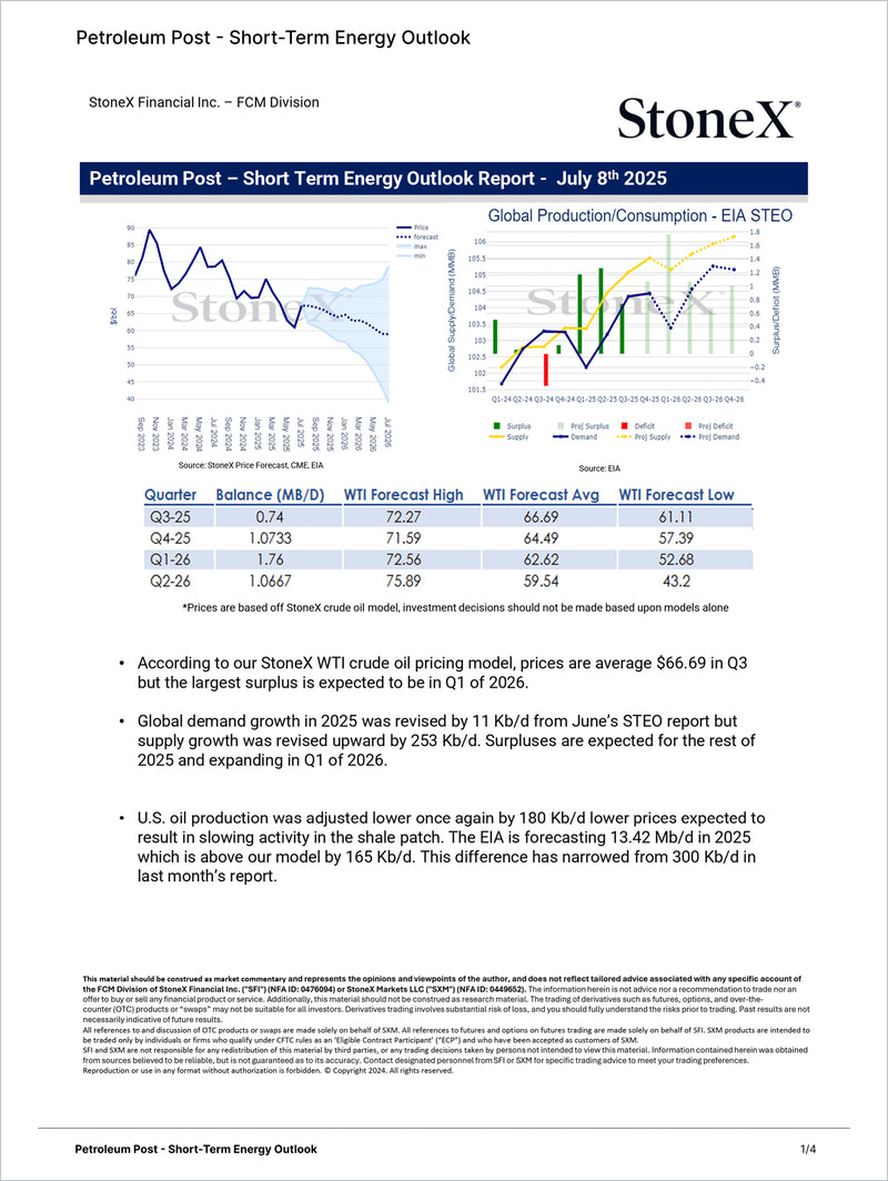 • Exclusive forecasts and inventory data EIA