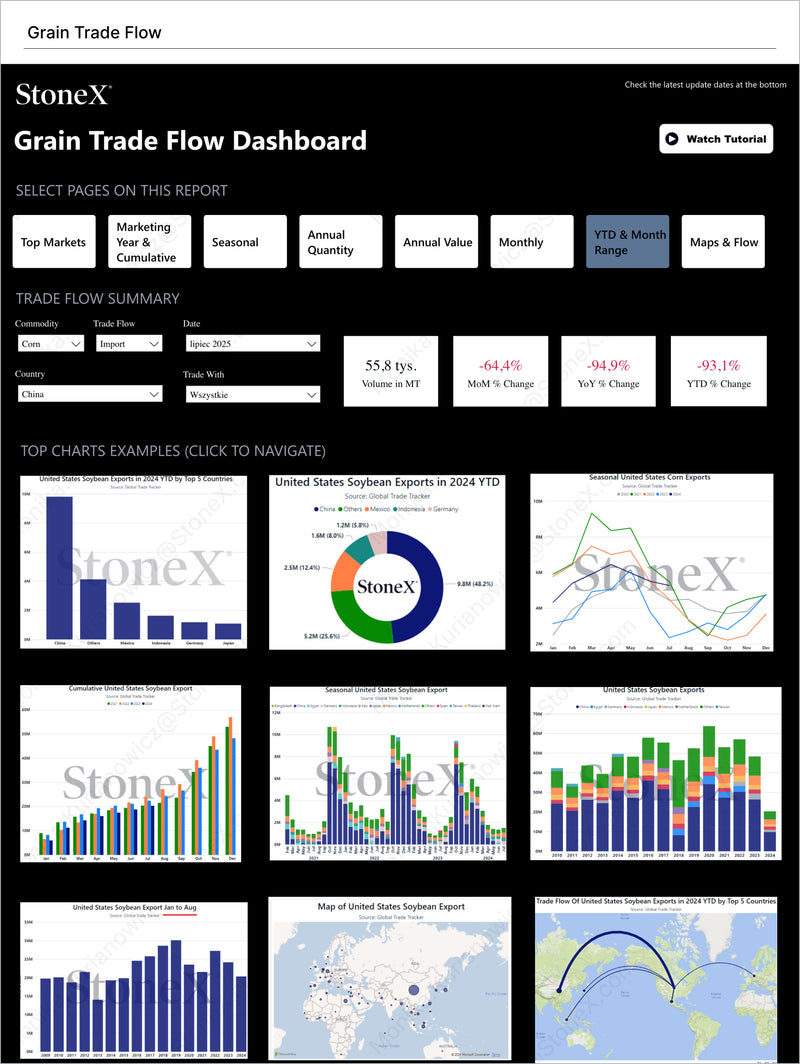 Grains Premium is your strategic intelligence suite for navigating the global grain markets with precision and foresight. Built for long-term planning and macro-level analysis, this tier delivers deep data, advanced dashboards, and high-sensitivity forecasts across key regions like the US, Brazil, and China. Whether you're tracking volatility, modeling risk, or shaping portfolio strategy, Premium equips you with the insights needed to stay ahead of global shifts and market complexity. Includes: