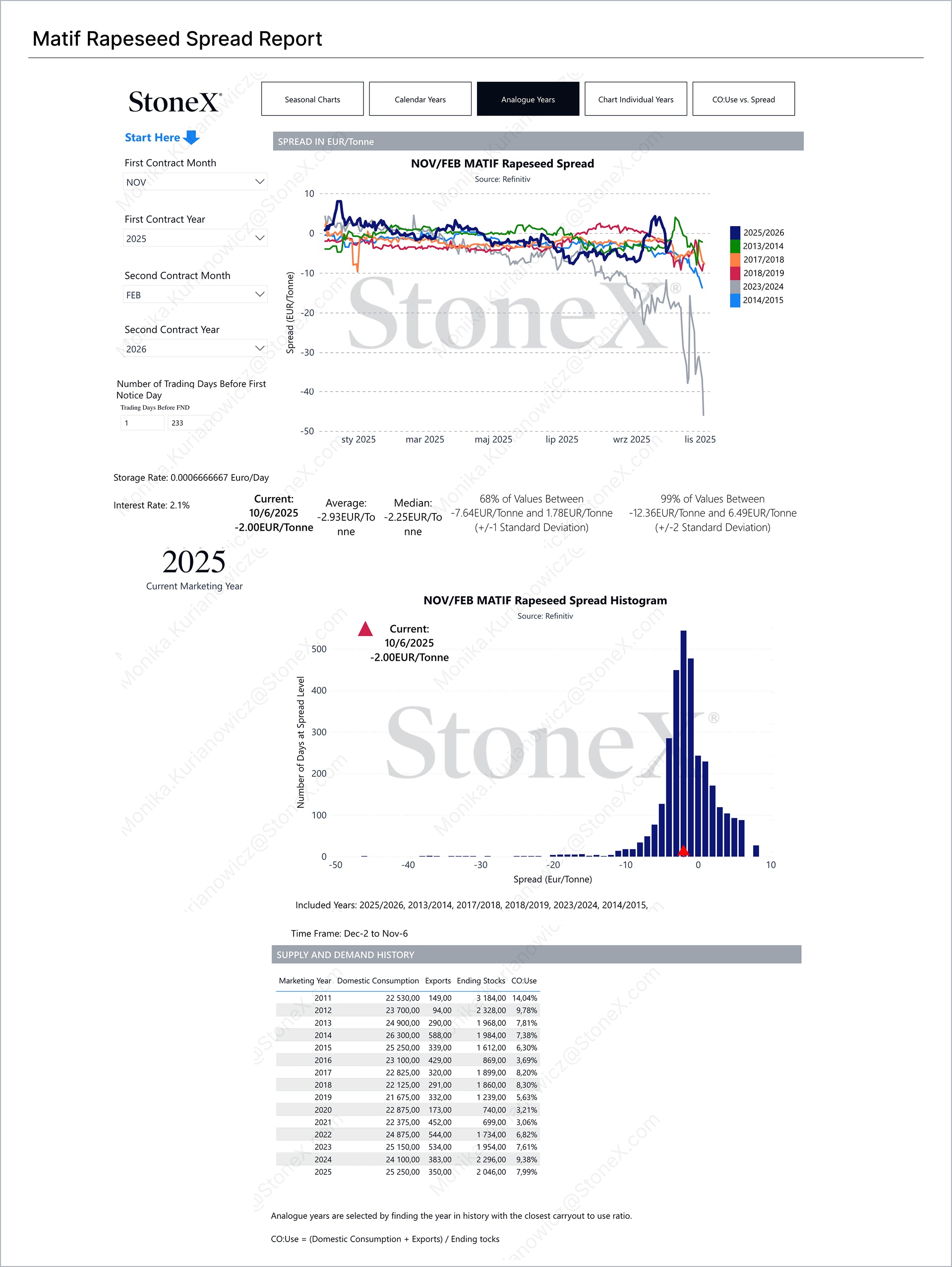 Matif Rapeseed Spread Report
