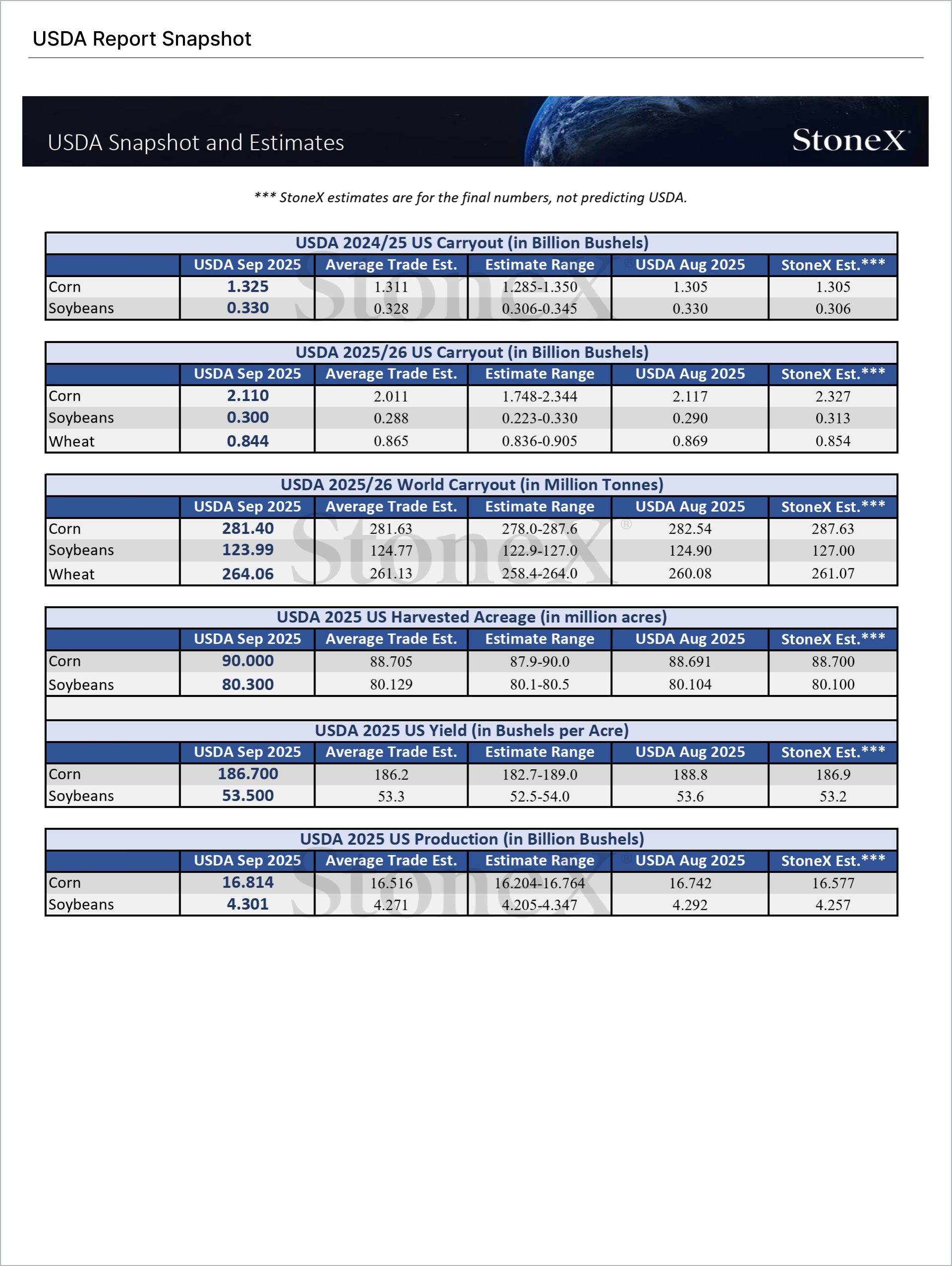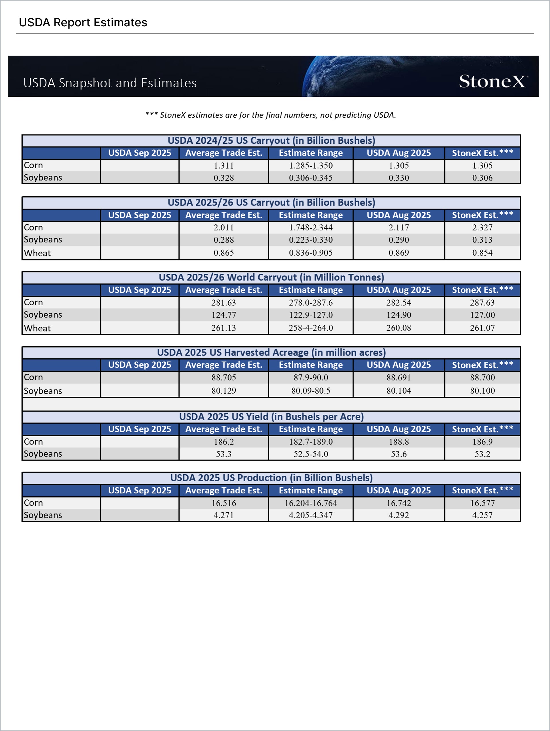 USDA Report Estimates