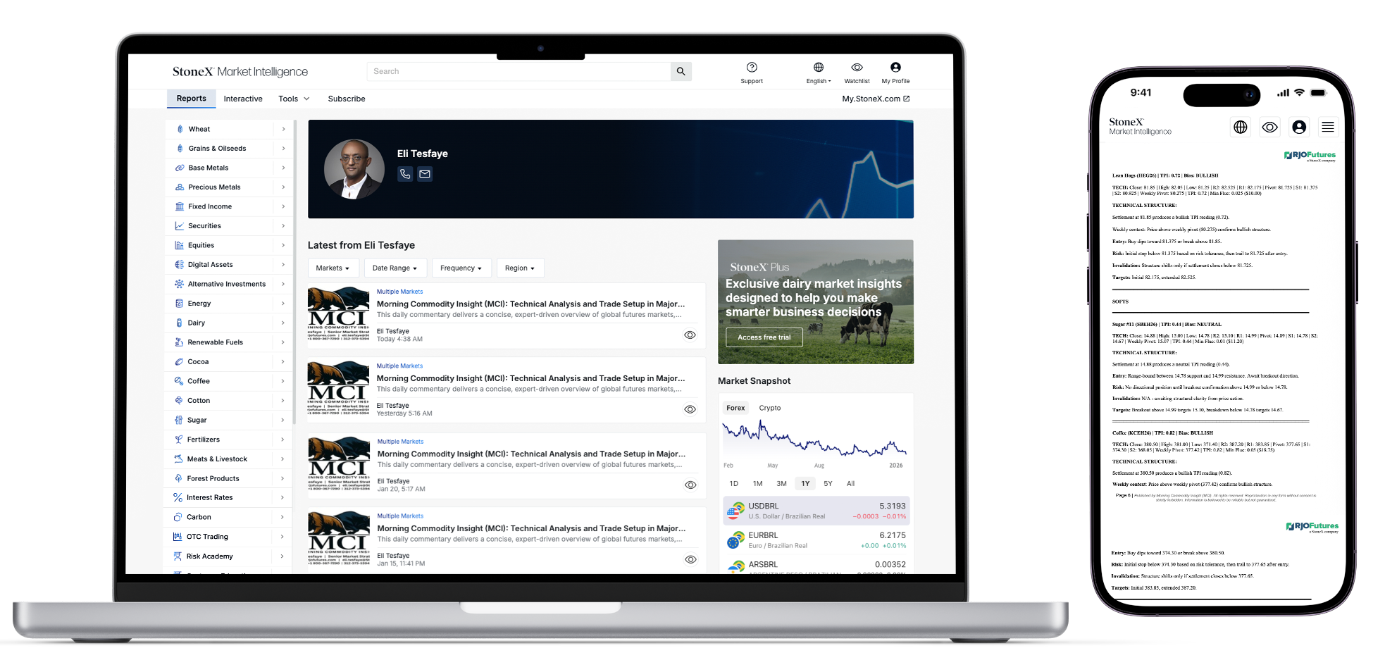 We want to help you have the best experience with StoneX! Speak directly with our StoneX Market Intelligence sales team: mi@stonex.com